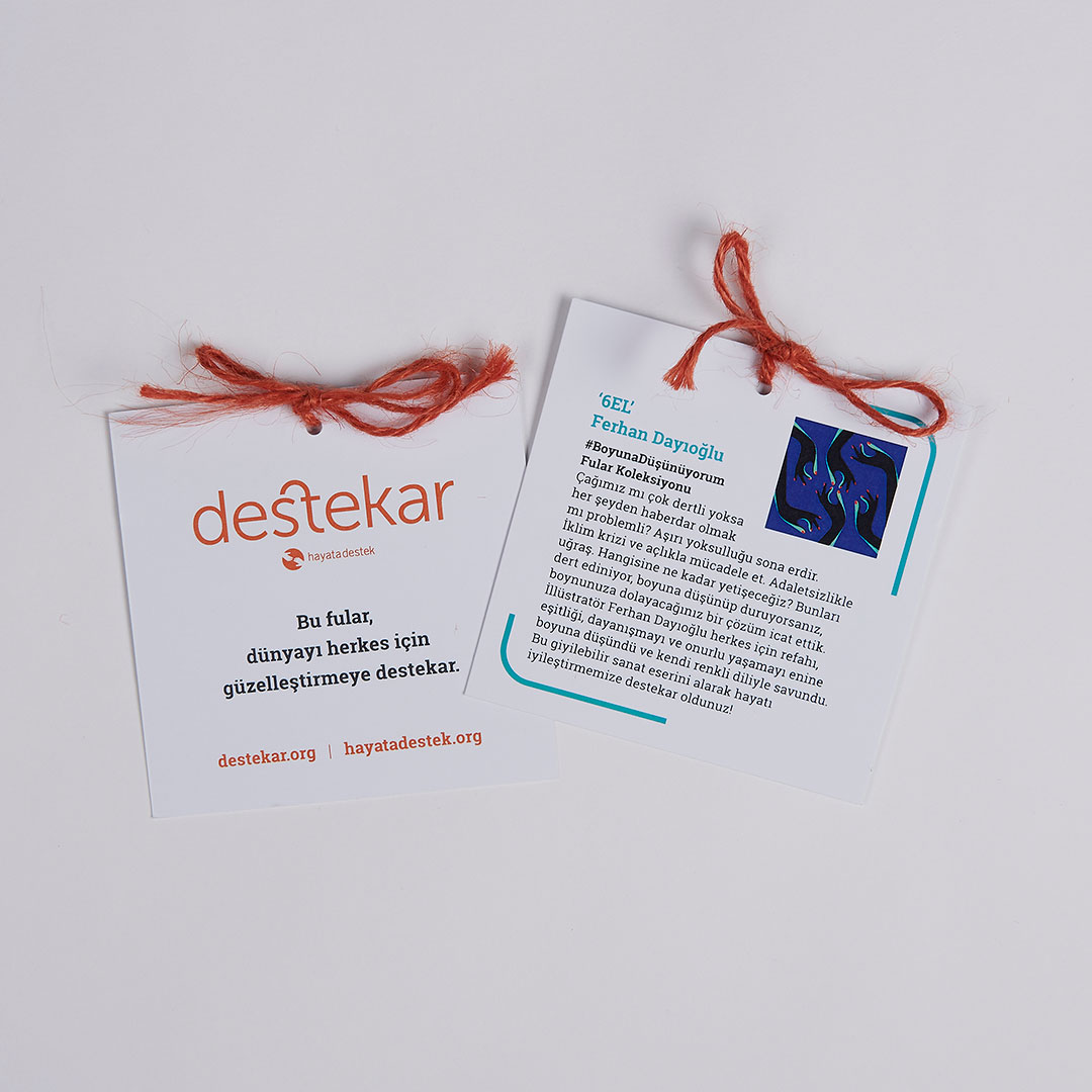 Çağımız mı her zamankinden dertli yoksa her şeyden aynı anda haberdar olmak mı problemli? Aşırı yoksulluğu sona erdir. Açlıkla mücadele et. Eşitsizlik ve adaletsizlikle uğraş. İklim krizine karşı eyleme geç. Hangisine ne kadar yetişilebilir ki? Bunları dert ediniyor, boyuna düşünüp duruyorsanız diye, boynunuza ya sevdiğinizin boyuna dolayacağınız çözümler icat ettik. Yetenekli illüstrasyon sanatçıları Can Çetinkaya, Elif Demir, Ferhan Dayıoğlu, ve Merve Atılgan herkes için refahı, eşitliği, dayanışmayı ve onurlu yaşamayı enine boyuna düşündüler ve kendi renkli dilleriyle savundular, #BoyunaDüşünüyorum Fular Koleksiyonu’nu oluşturdular. Bu giyilebilir sanat eserleri, hayatı herkes için güzelleştirmenize destekar.